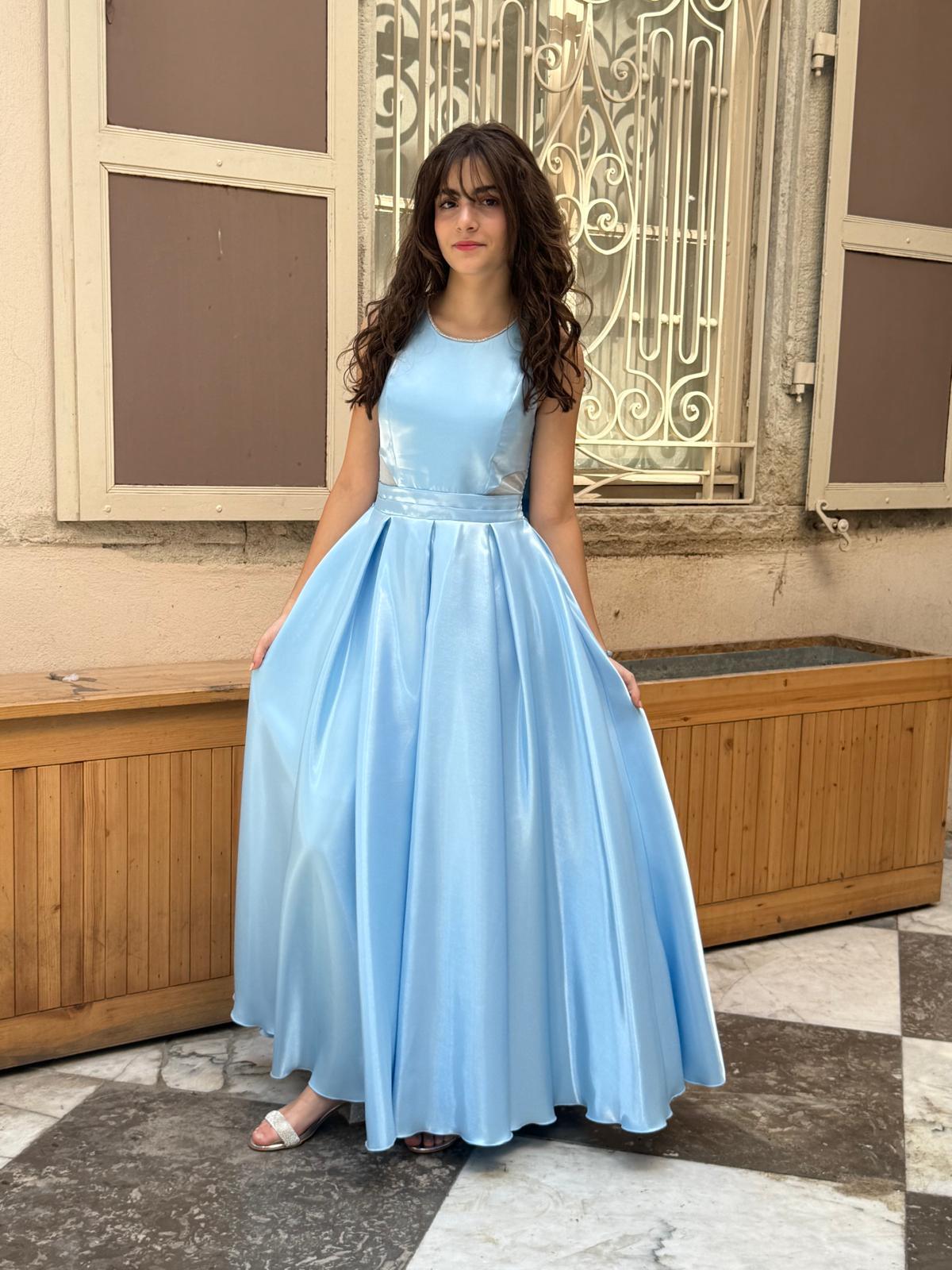 Kız Çocuk Abiye Bebemavi Parlak Saten Uzun Sırt Fiyonklu Abiye Elbise 10-15 Yaş
