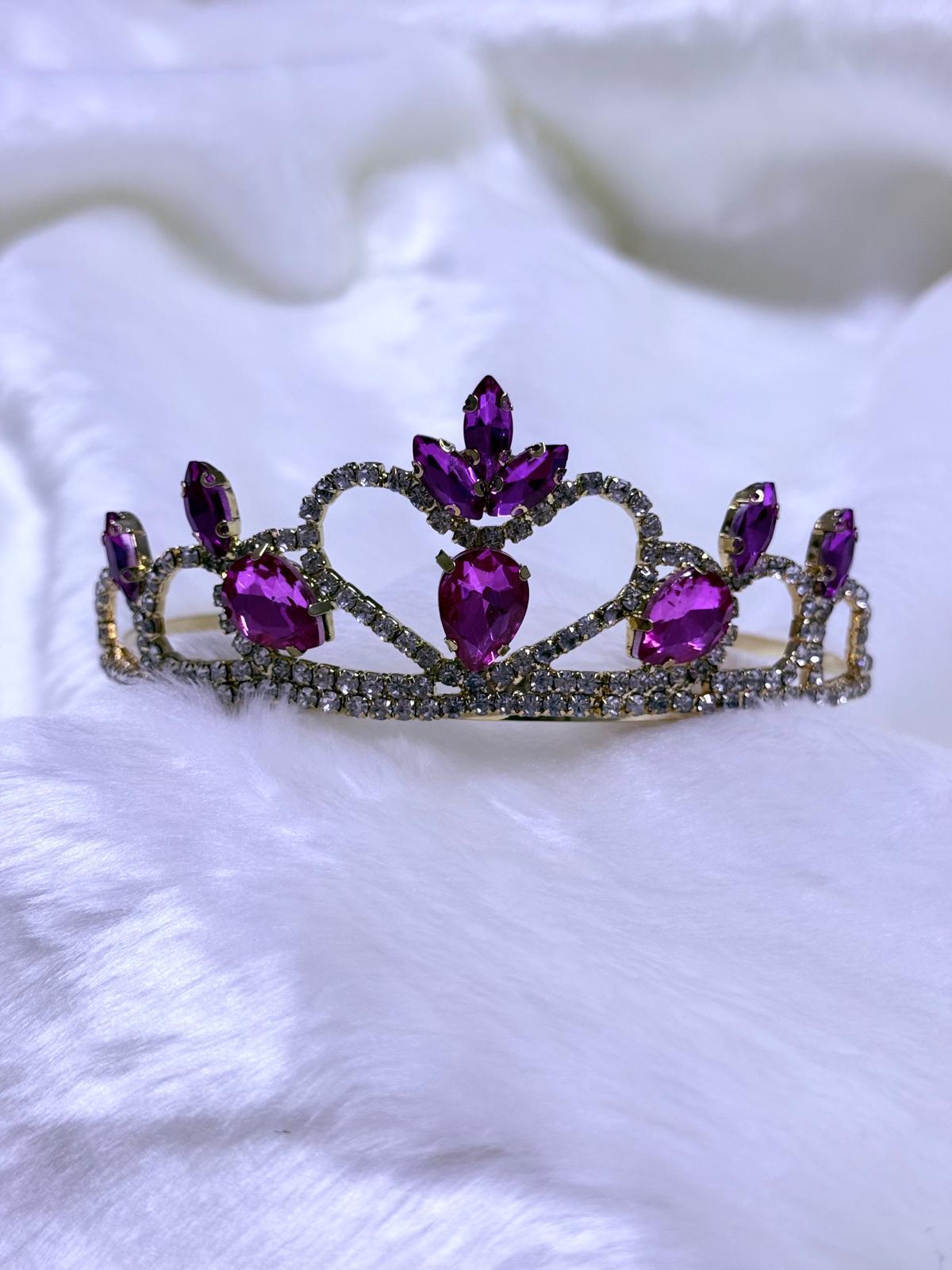 Prenses Tacı Gold Fuşya Taşlı